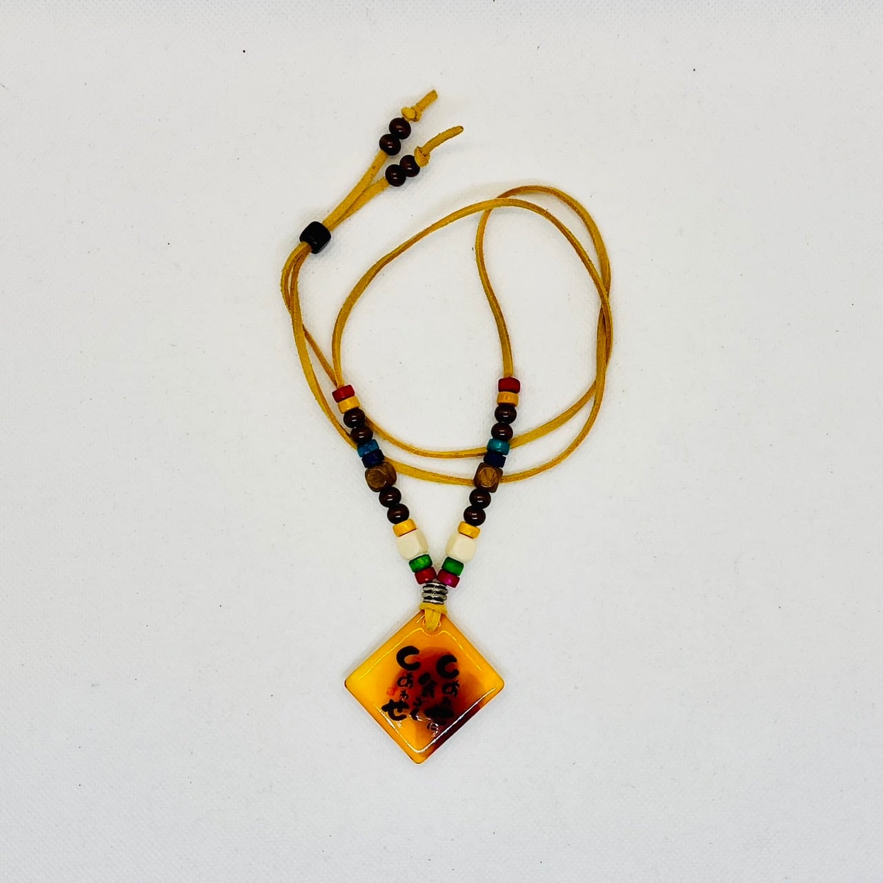 ・色とりどりの木製ビーズが胸元をやさしく彩ります