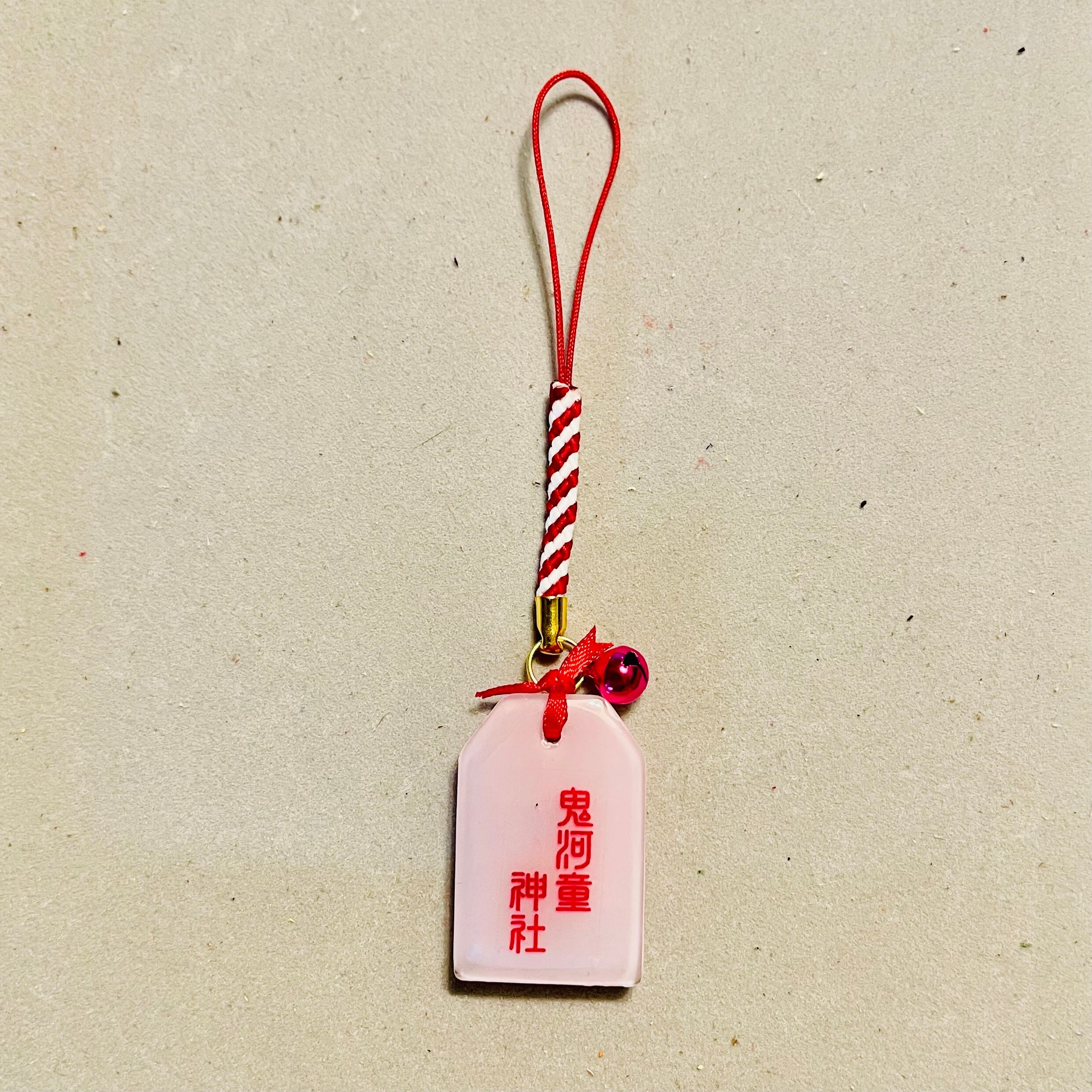 お守り ピンク ストラップ:赤×白 鈴:濃いピンク