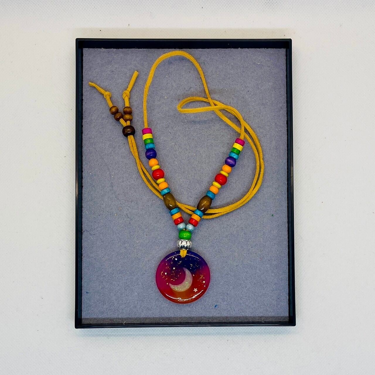 三日月と星をモチーフに、一つひとつ丁寧に作り上げたハンドメイドペンダントです。